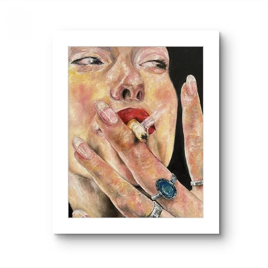 Categories: Select a Category Prints Art Shop Prints | Drinking Games from $85.00 Found Shells from $65.00 Touch Ups from $80.00 Smoking Girl from $65.00 Girl Talk from $80.00 Just Drinks, Please from $80.00